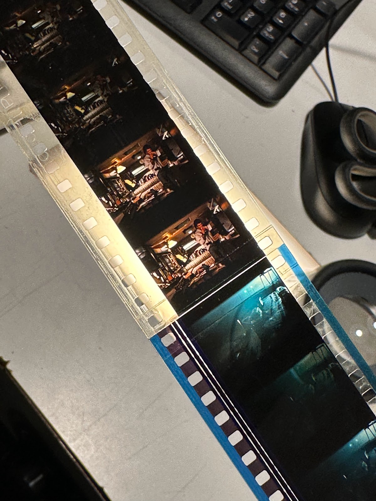 Print/video Inspection: There are two sizable portions in the first reel of Lethal Weapon which have been spliced in that contain no soundtrack. I inspected reel two as a precautionary measure but this had a consistent soundtrack throughout. Jack had originally inspected the print and made mention of it but did not have a chance to tech the film himself. I ran the first reel this evening after the last round concluded and there are, in fact, two instances of total silence for a few scenes. The first section is about two minutes long and the second is a single 30 second long scene. I have attached a few photos below that show where the soundtrack is cut off and what the film looks like sans the audio waveform